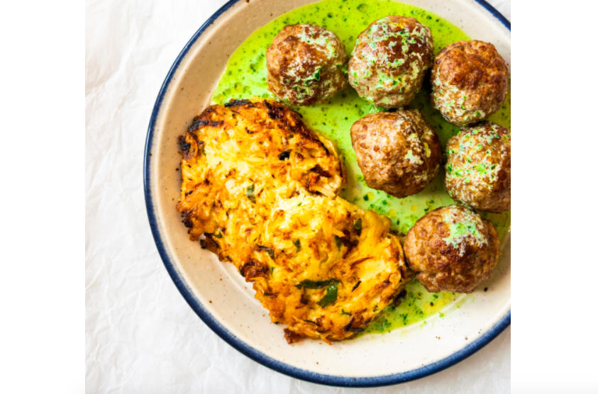 2. Makkelijke aardappel-spitskoolkoekjes met gehaktballen en peterselieroom