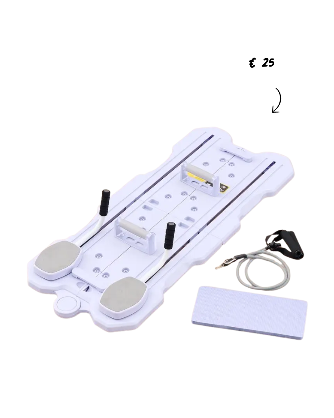 Het lijkt de normaalste zaak van de wereld: influencers die hun dag beginnen met een lesje reformer pilates. Mind you, een abonnement bij een gemiddelde pilatesstudio kost je al gauw meer dan tweehonderd piek per maand. Heb je dat er niet voor over? Dan werkt dit apparaat van 25 euries net zo goed.