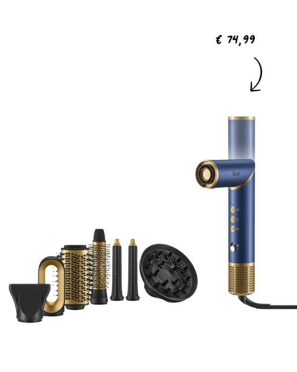 Is je oog ooit gevallen op de donkerblauwe met gouden Dyson-föhn, dan zal je dit design ongetwijfeld herkennen. Deze multistylerset, zoals de supermarkt het noemt, biedt alles voor een gepolijste haarlook. Met zeven verschillende opzetstukken en een 90 graden draaibaar blaasstuk style je zonder moeite je haar. Ook berg je deze set gemakkelijk op in de bijbehorende luxe beautycase.