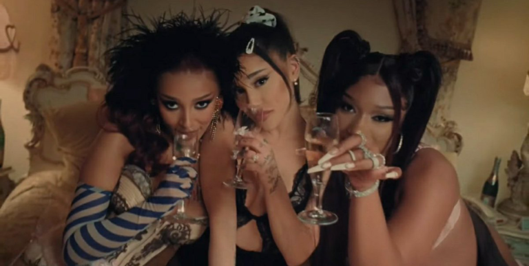 De nieuwe videoclip van Ariana Grande is een grote sleepover met Megan Thee Stallion en Doja Cat