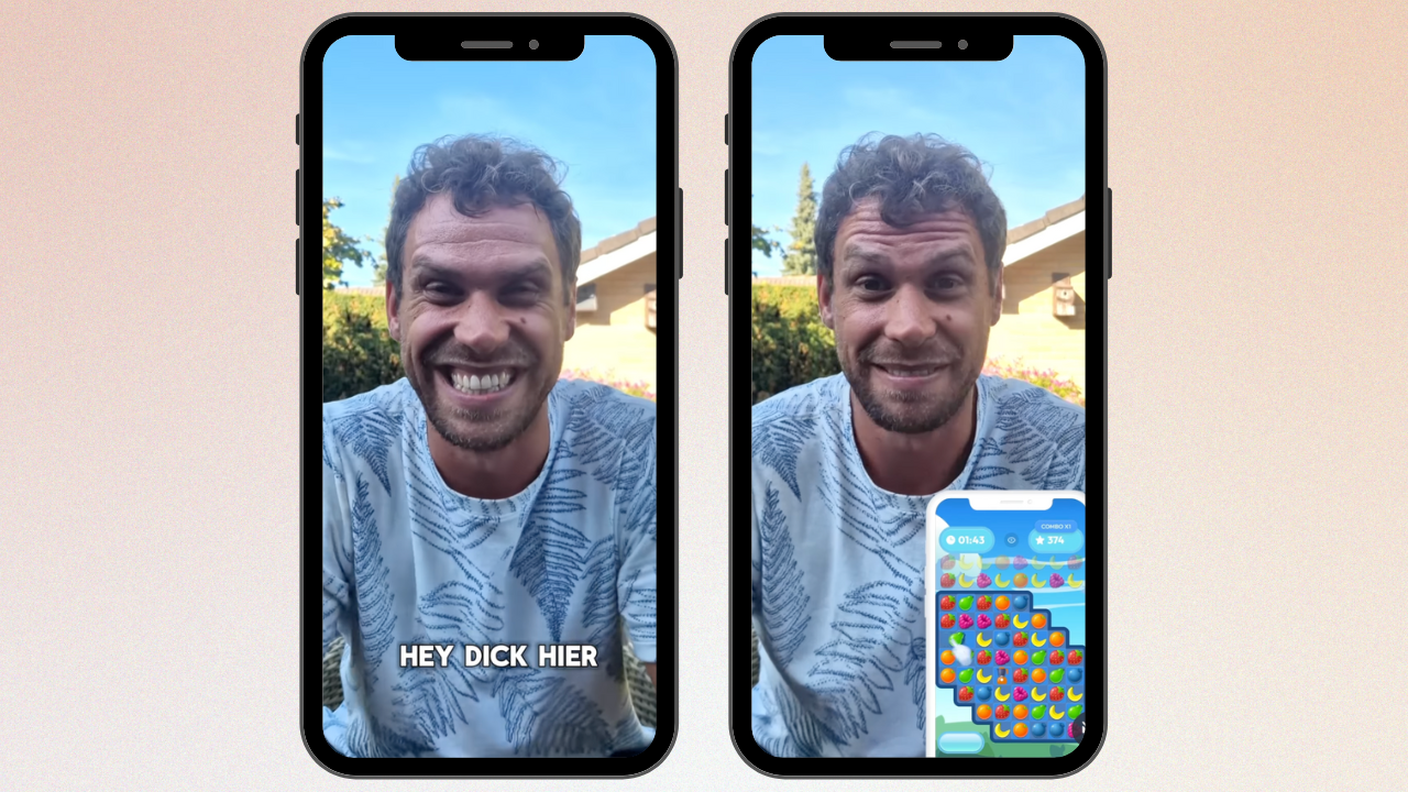 “Hey, Dick hier”, horen we in de video. De B&B-deelnemer begint vervolgens over het “vinden van een match”, iets wat je volgens hem op deze specifieke spelletjessite sowieso gaat vinden. “Fruitjes matchen, spelletjes winnen, relaxen en leuke prijzen winnen”, vult hij aan.