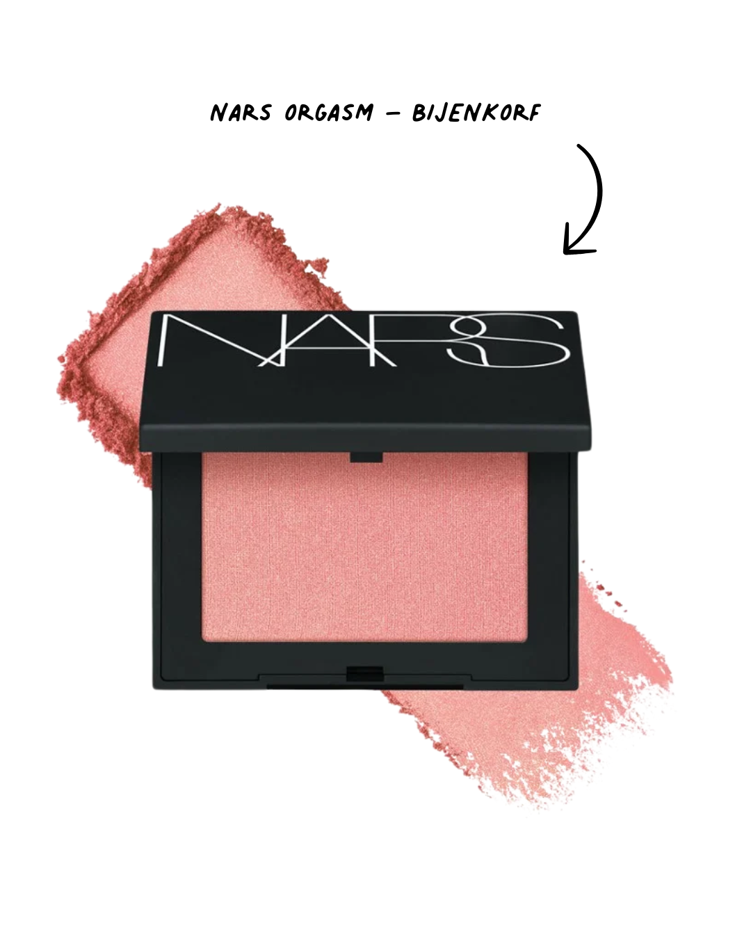 “Mijn lievelingsblush (en die van heel veel anderen) is NARS Orgasm. Dit is wat mij betreft gewoon de allermooiste kleur. Een goedkope dupe die er exact op lijkt, heb ik helaas nog niet gevonden.”