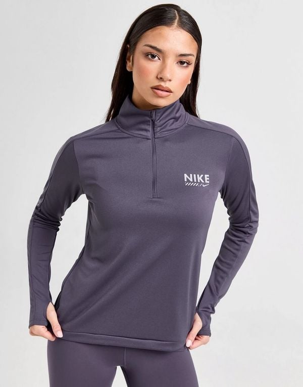 Laagjes zijn key tijdens het hardlopen in de winter. Investeer in een hardlooptop die je niet alleen warm, maar ook zweetvrij houdt. Deze variant van Nike heeft duimgaten (wat voor extra warmte zorgt) en voert zweet af.