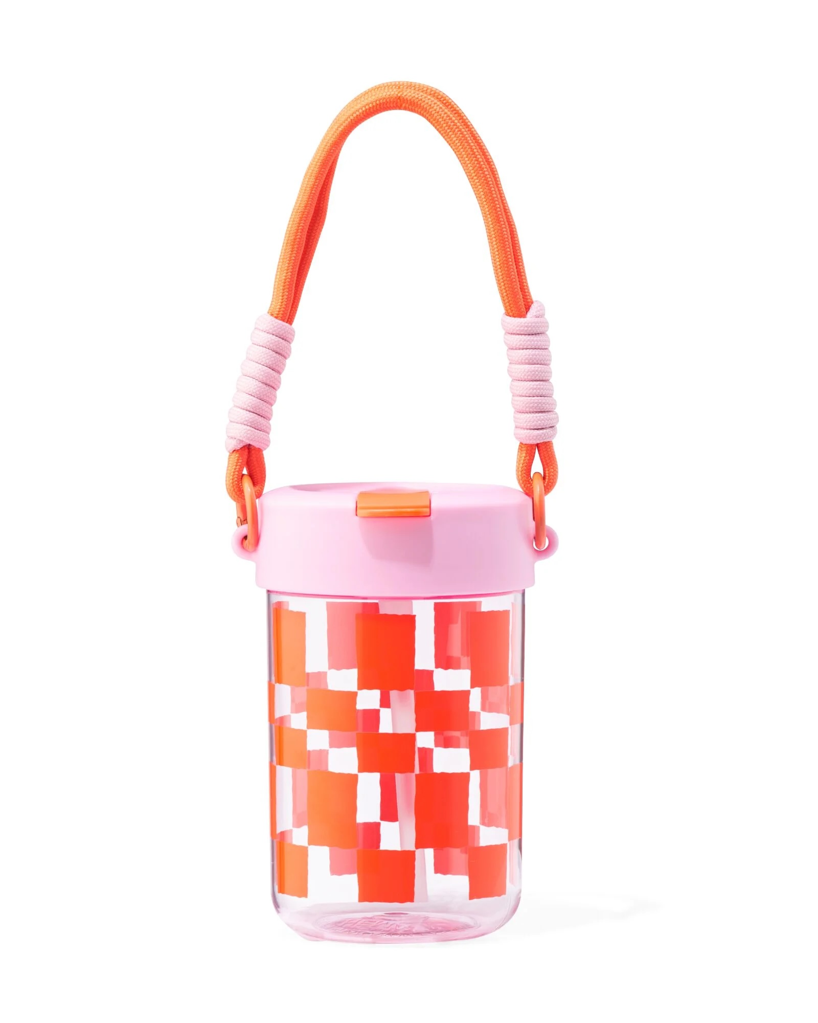 Het enige waar je wél van moet houden, is het vrolijke kleurenpalet. Deze roze-oranje drinkbeker heeft een inhoud van 450 milliliter (perfect voor een ijskoffie). Daarnaast heb je je handen vrij, want er zit een handig handvat aan. Wat wil je nog meer.