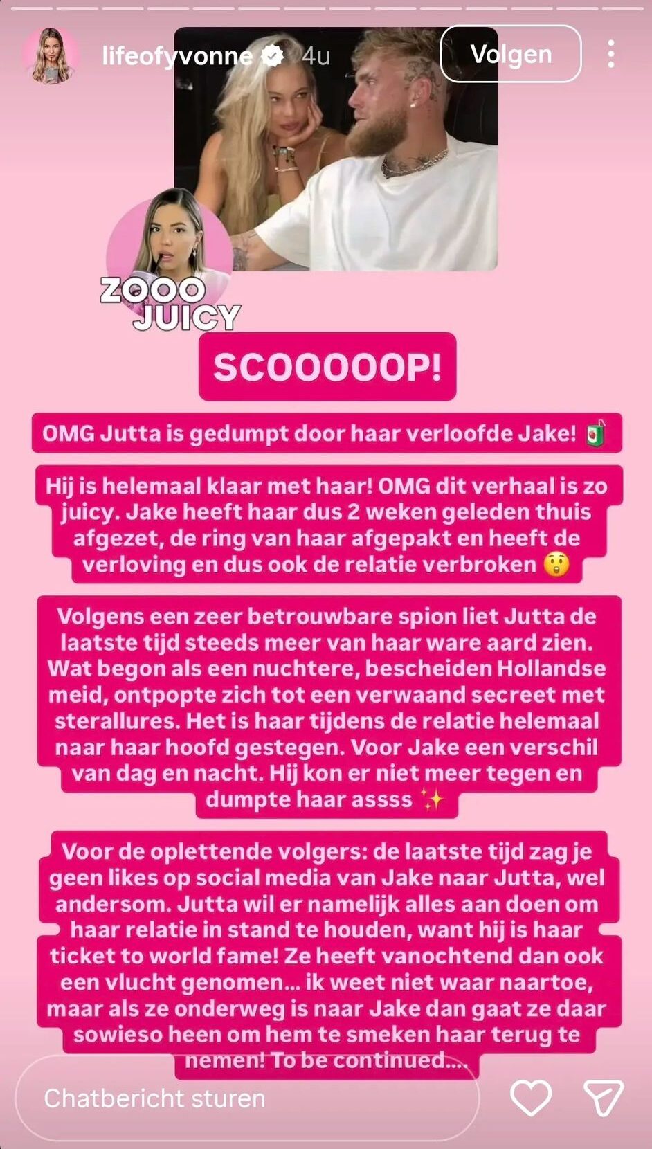 Juicekanaal Life of Yvonne claimt break-up tussen Jutta Leerdam en Jake Paul