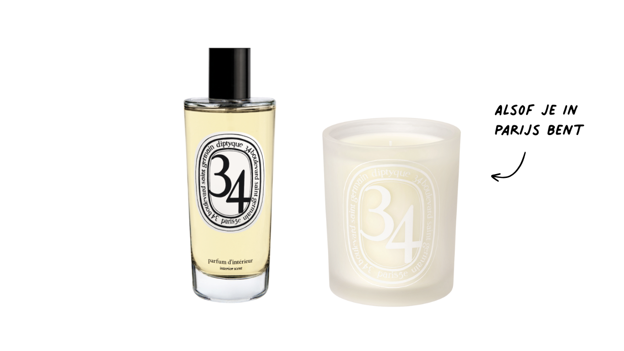 Diptyque roomspray 34 – €64 | Geurkaars 34 – €90