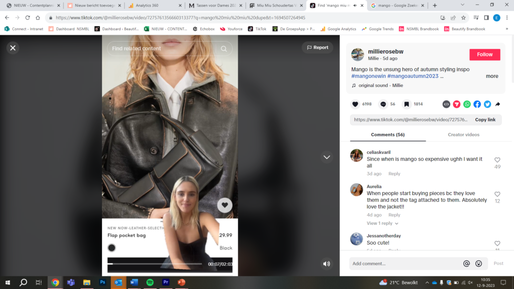 MANGO heeft een prachtige herfstcollectie en vooral deze tas is populair.. omdat het duidelijk een Miu Miu dupe is.