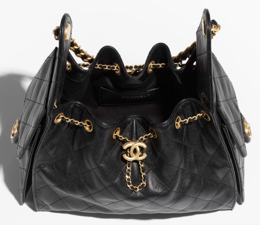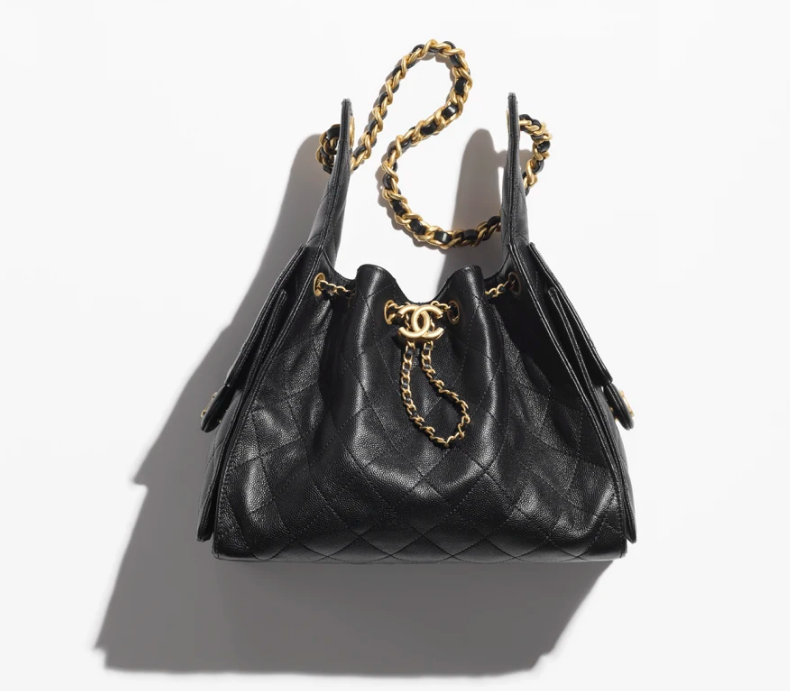 Nu willen we natuurlijk allemaal weten welke tas het precies is. Het is een tas uit de voorjaar-zomer 2025 collectie, de kleine Chanel 2025 tas. Hij is gemaakt van kaviaar kalfsleer met goudkleurig metaal – en Monica heeft voor de zwarte variant gekozen. De tas heeft een waarde van €5800(!)