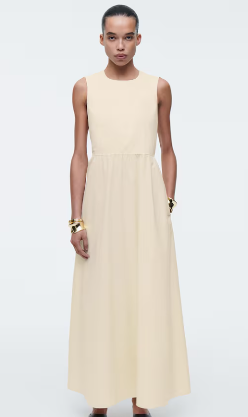 Deze jurk is bijna niet geel te noemen, toch is ‘ie dat wel. Mocht je houden van neutrale kleuren, dan is deze jurk van COS perfect voor jou.