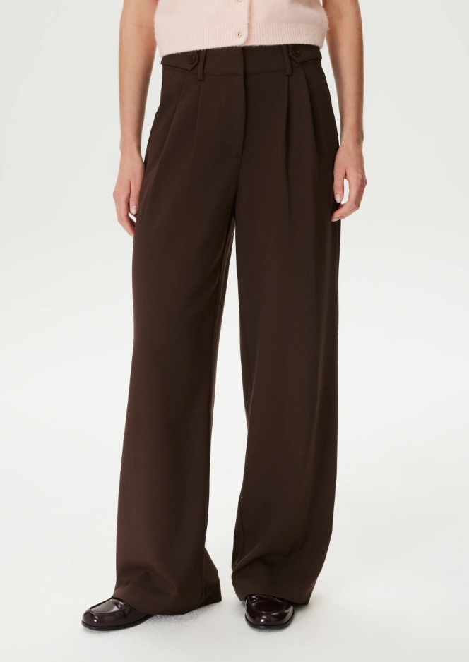 De wijde pijpen en hoge taille zorgen voor een vrouwelijke en stijlvolle pasvorm. De broek zit ook enorm comfortabel dus je kan ‘m prima de hele dag op kantoor aan. De pantalon is voor €69.95 verkrijgbaar in maat XS tot en met maat XXL.