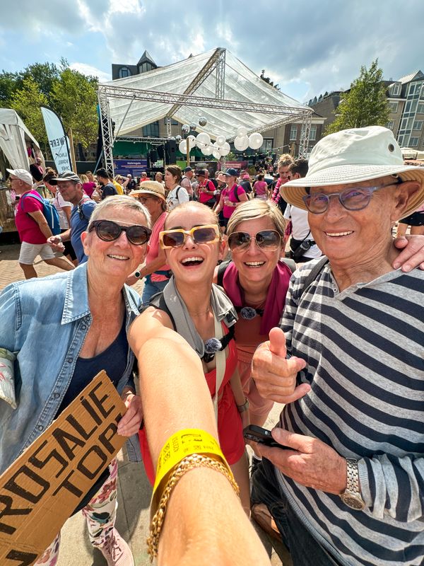 “Mijn moeder wilde dit al heel lang,” vertelt Rosalie. Haar opa liep vroeger zelf de Vierdaagse en leeft gelukkig nog. Het besef dat het leven ineens kan veranderen, gaf haar moeder het zetje: “We moeten dit gewoon doen, nu hij het nog mee kan maken.” En zo geschiedde: Rosalie en haar moeder schreven zich samen in.