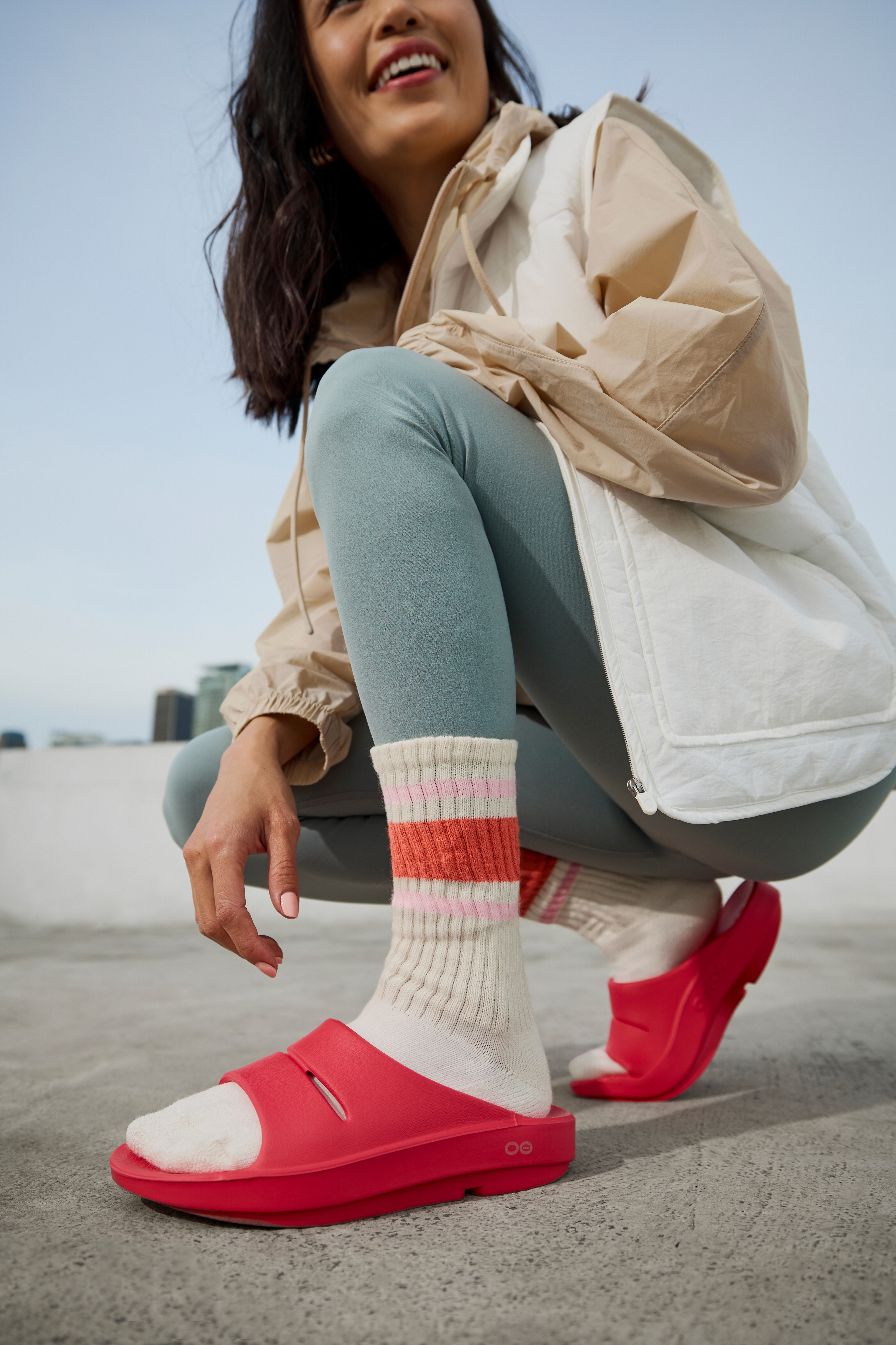 OOFOS is niet zomaar footwear maar speciaal ontworpen om je voeten en lichaam sneller te laten herstellen na een intensieve workout of een lange dag op je benen. Dankzij de technologie in de zool worden je gewrichten minder belast, waardoor je sneller herstelt.