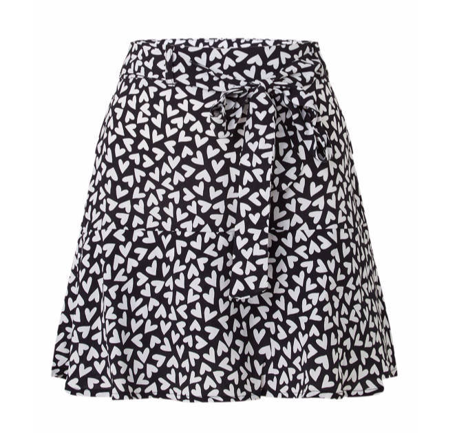 Deze skort is perfect voor dit seizoen. Leuk met een statement tee, al past een basic oversized variant ook prima bij de print. Aan de bovenkant heeft dit model een strik.