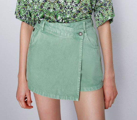 Skorts komen in allerlei soorten, zo vind je bij Zara deze denim variant. Een stoerdere broekrok dan dit kun je niet vinden. De asymmetrische voorkant maakt de fashionable look helemaal compleet.