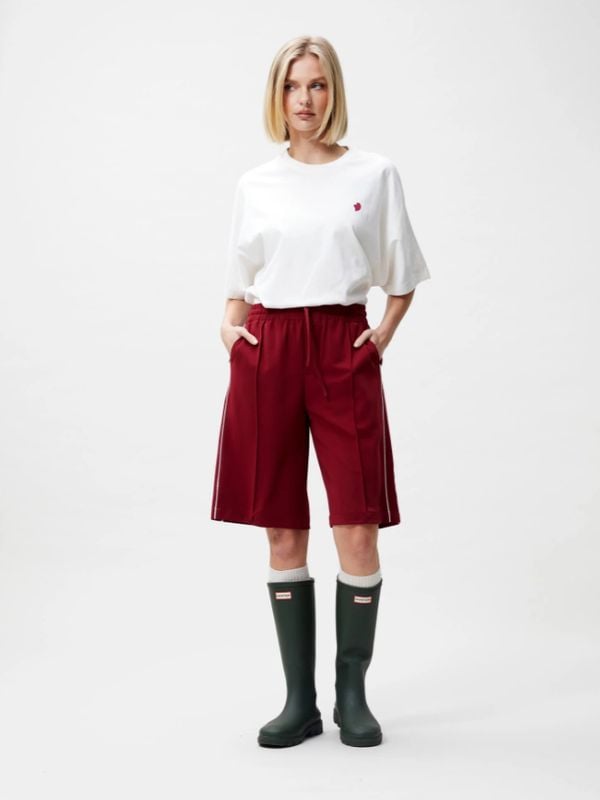 Wij kwamen deze parel van bermuda tegen bij Catwalk Junkie. Het is een tracksuit-modelletje met een streep aan de zijkant. Deze sporty bermuda laat zien dat comfy en stijlvol heel goed samen kan op een festival. Bekijk de broek hieronder: